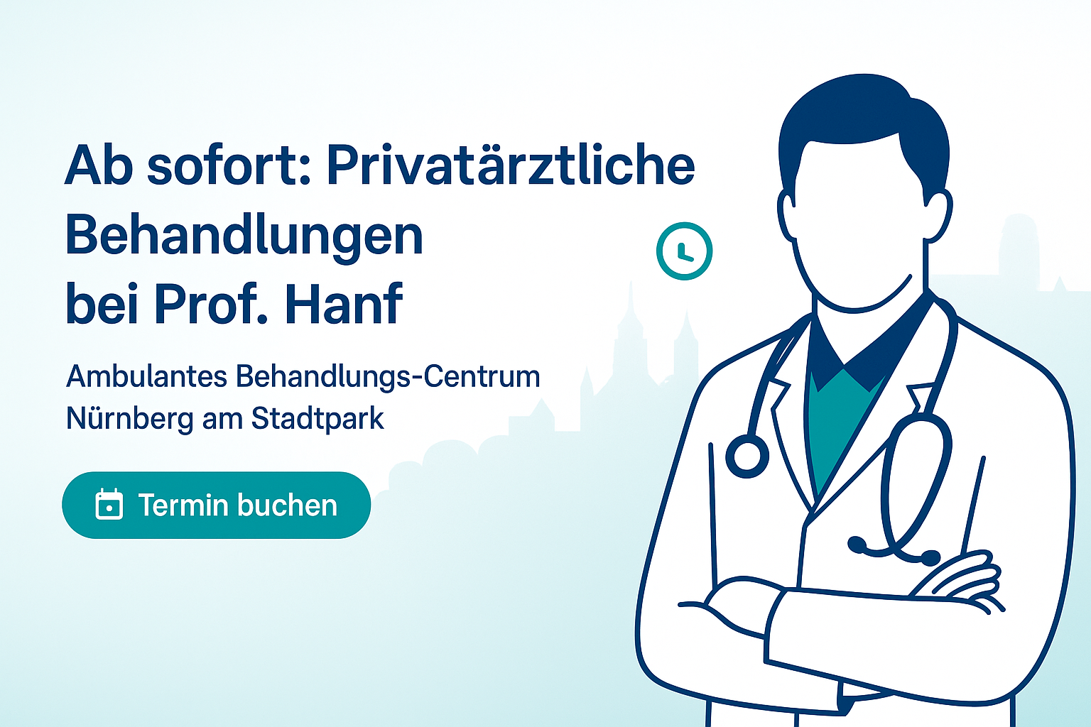 Ab sofort ist es möglich, privatärztliche Behandlungen bei Prof. Hanf im Ambulanten Behandlungs-Centrum Nürnberg am Stadtpark zu buchen.